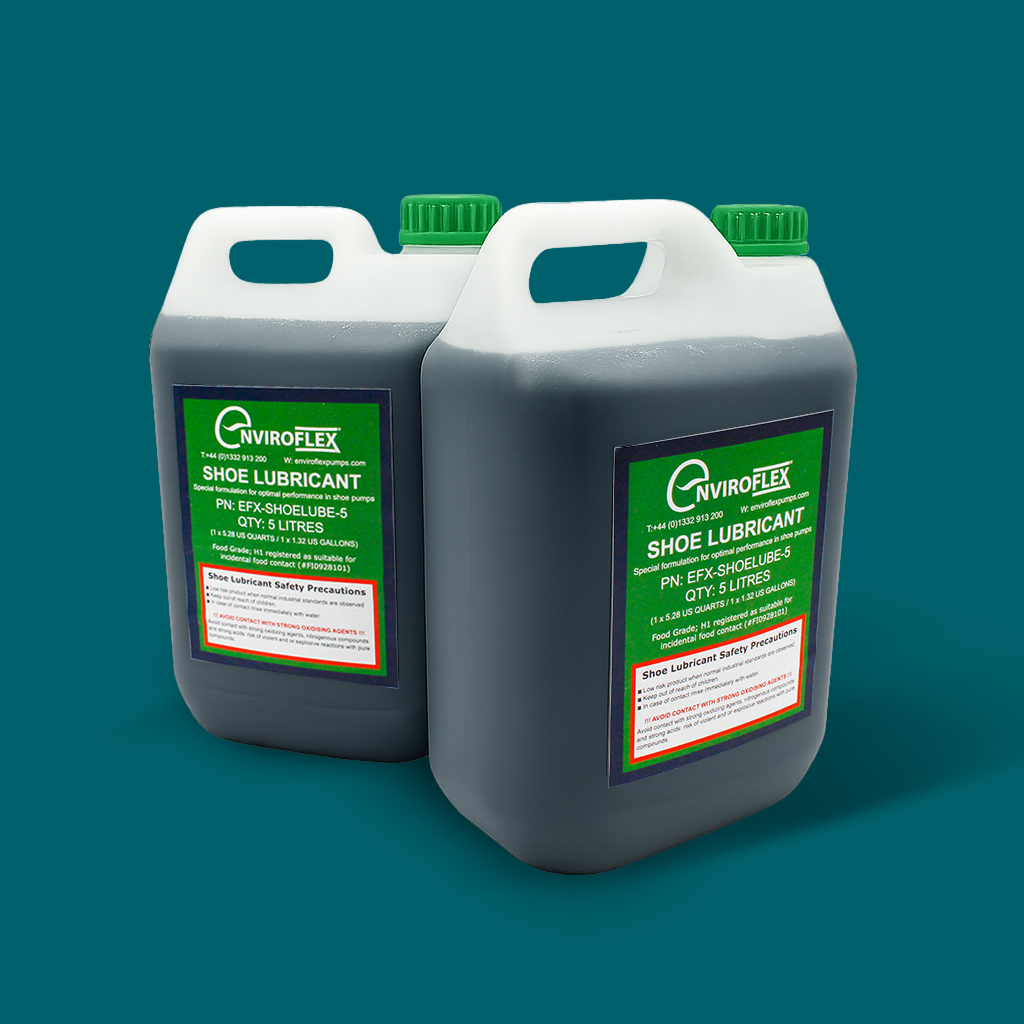 Enviroflex also offer shoe lubricant, compatible with Bredel’s peristaltic pumps. Our lube comes in 5 litre, 10 litre or 20 litre containers, or alternatively we can provide 1000 litre IBC. Our lubricants are H1 certified and are safe for incidental food contact.