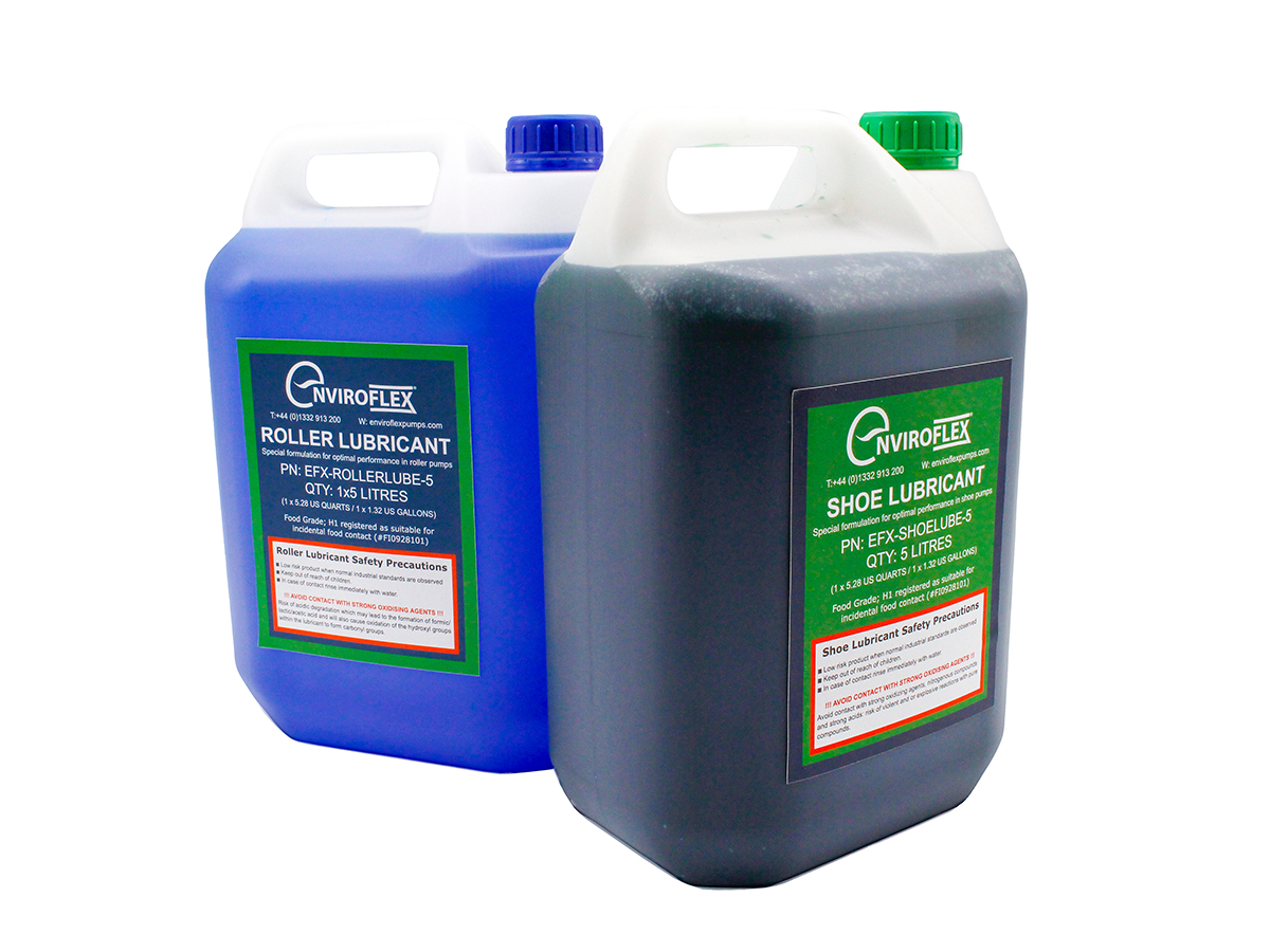Enviroflex also offer shoe and roller lubricant, compatible with Valisi’s peristaltic pumps. Our lube comes in 5 litre, 10 litre or 20 litre containers, or alternatively we can provide 1000 litre IBCs. Our lubricants are H1 certified and are safe for incidental food contact. If you are unsure whether you need shoe or roller lube for your Valisi pump, please contact one of our team before making your purchase.